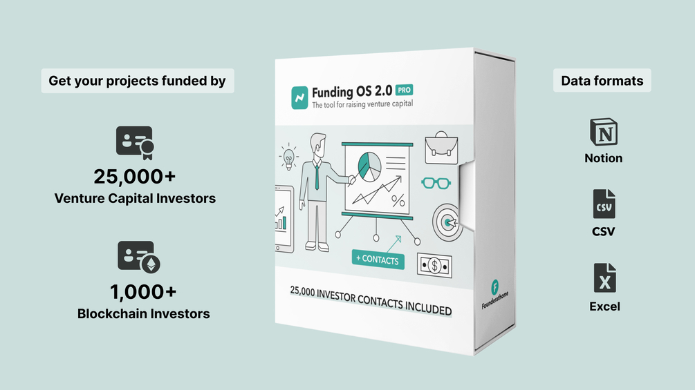 This package contains a database of more than 25,000 investor contacts (variety of investment topics available, see data specification below) and more than 1,000 investors with blockchain focus.